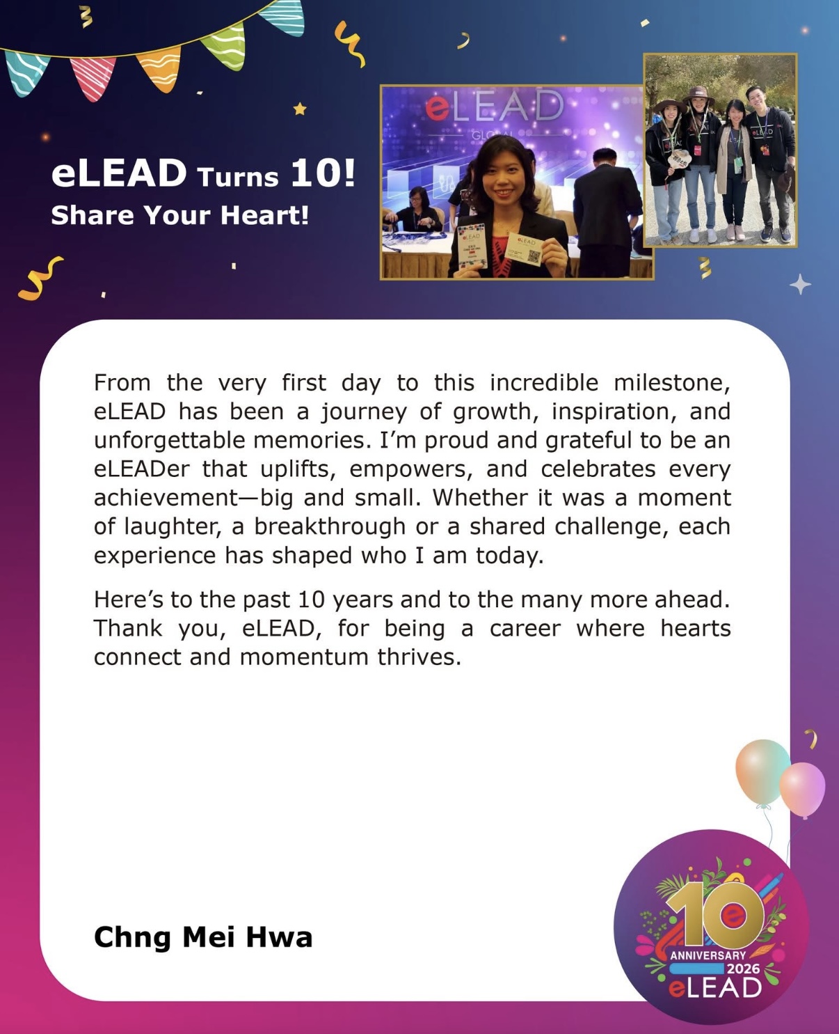 It’s heartwarming for company to have this activity of posting your sharing on this topic - eLEAD Turns 10! Share Your Heart !